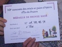 Photographies transmises par Alain C****** Bravo Bernard D******* et Alain C****** de l'équipe de Champlan, pour ce diplôme du concours des miels de l'Ile de France, décerné à l'AMOP.