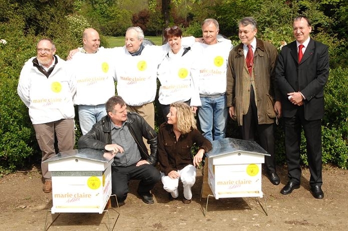 Marie-Claire Idées, propriétaire de ces ruches, l'UNAF le gestionnaire ainsi qu'une trentaine d'apiculteurs d'Ile de France étaient présents.