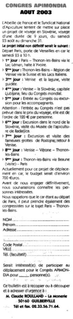 Informations parues dans L'@beille de France N°889 de Fevrier 2003