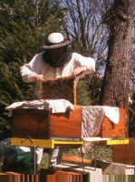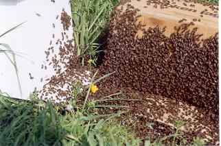 Essaim placé dans le creux d'une porte menant à un jardin, sa longueur dépassait 1,5 mètre.