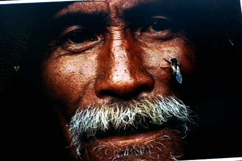 "Mani Lal Gurund, une abeilles sur la joue, se repose entre deux récoltes de miel.