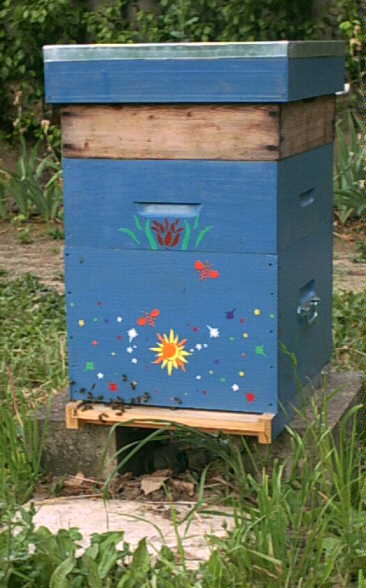 Jolie ruche peinte et fleurie de Christina Au rucher du Potager du Roi à VERSAILLES