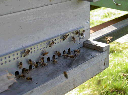 15°C à l'ombre , 23°C en plein soleil ! Les abeilles font le ménage de la ruche .