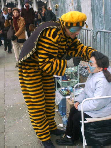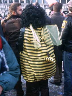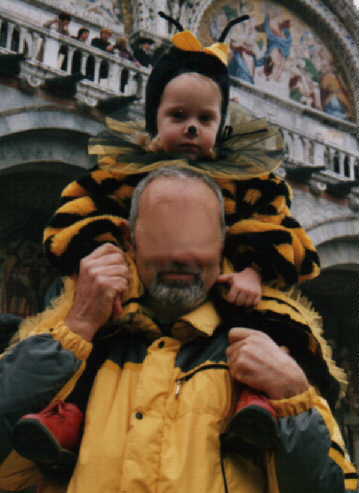 ***Les abeilles sont à l'honneur, virvoltant j'en ai vu 4 , en voici une donc une pour vous apiculteurs, A gauche: une jeune reine sur les épaules de son père sur la place Saint-Marc; en fond la basilique de Saint Marc.