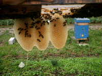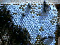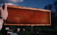 Cadre de l'année avec une cire d'aspect rougeoyante par la présence de propolis? (la cire pure est blanche, la cire de l'année est en général jaune claire)