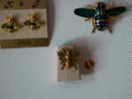 Trois types différents d'abeilles avec une paire de boucle d'oreilles, une broche et un "pin's" de luxes car plaqué-or.