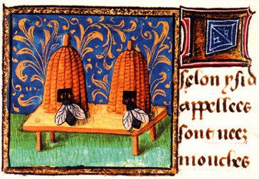 Carte de 1999. Il s'agit d'une miniature du Moyen-Age. L'origine est picarde c'est pourquoi les abeilles sont appelées "Mouches" dans le texte.