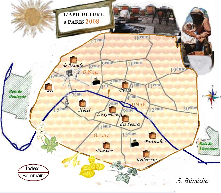 Rucher de paris liste carte des ruches situé dans la capitale parisienne / rucher du luxembourg / rucher du jardin d'acclimatation , rucher du parc kellerman , rucher du parc Georges brassens , rucher de l'opéra , rucher de l'étoile, le SNA