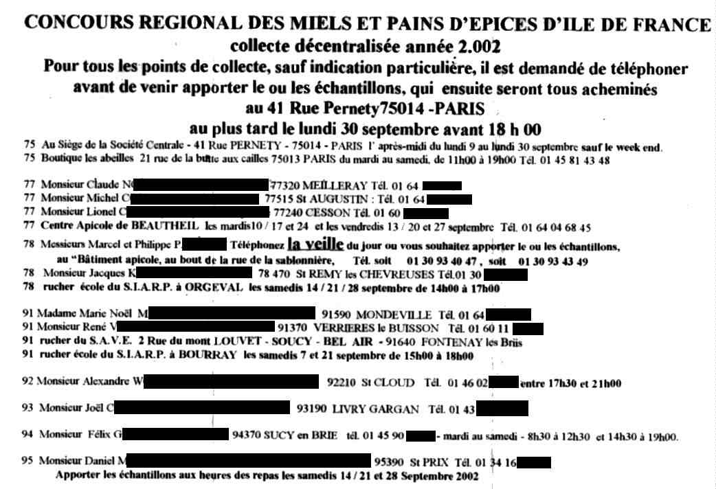 Les noms des personnes ont été volontairement voilés afin de préserver leur anonymat et ne pas diffuser directement sur le "net "des informations personnelles (adresses,téléphones) sans leur consentement préalable. Si vous voyez des points de collecte proche de chez-vous, faites moi la demande par E-mail ( steph.benedic@laposte.net) je vous transmetterais alors cette information.